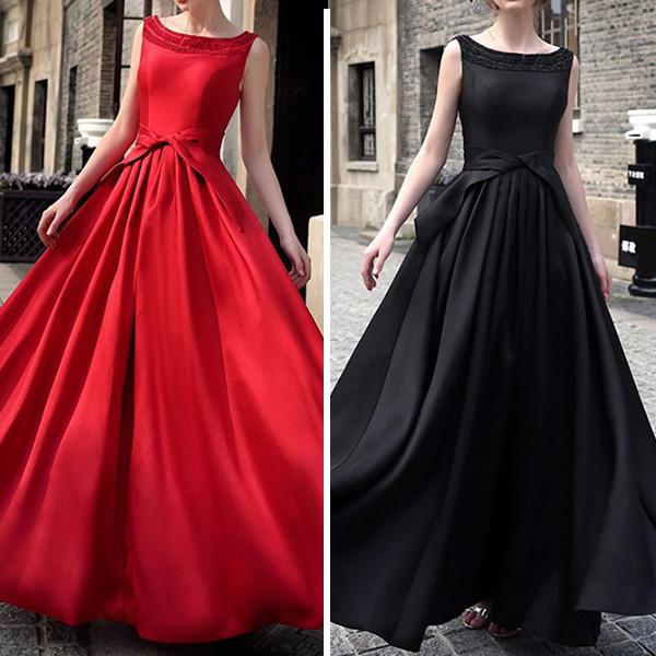 The solid color tone is designed for an elegant and noble vibe. Accompanied with sleeveless,round neck,