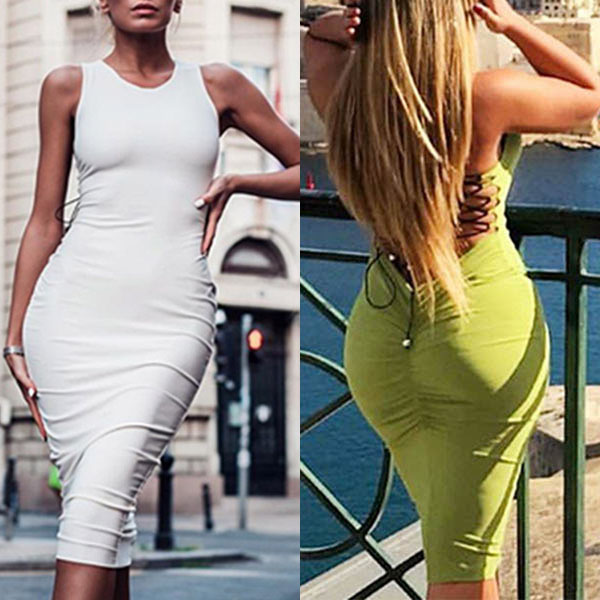with sleeveless,round neck and backless,sexy and sultry,while the tight silhouette design will amplify