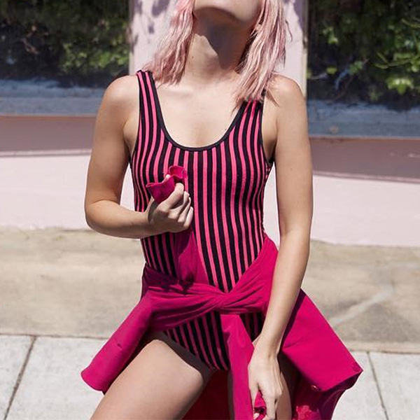 Except for bodycon dress and tight dress,bodysuit is also a good way to portray your sexy and seductive curve. Striped style,