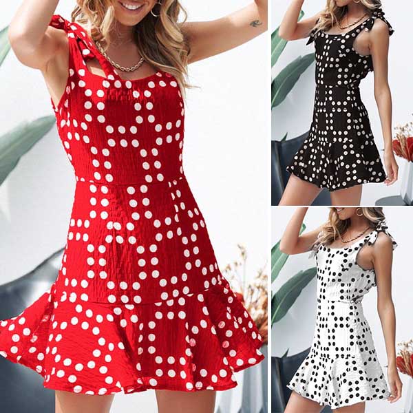 and ruffle hem design make this piece look so sexy and charming,while the dots printed design will