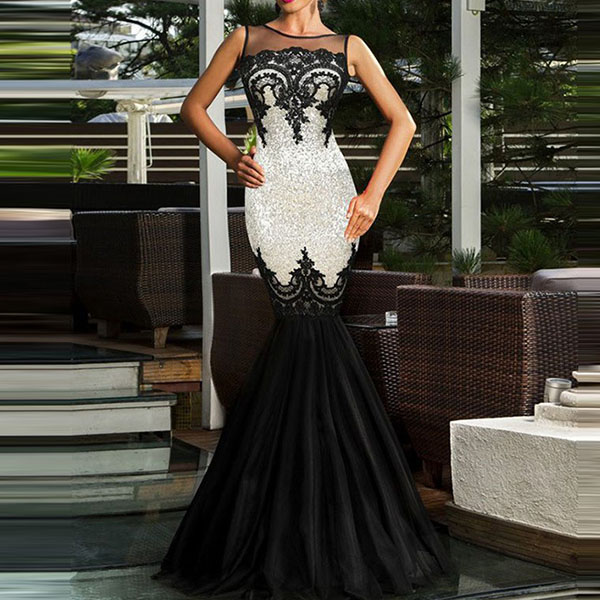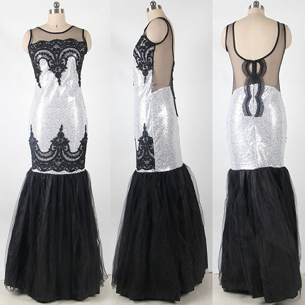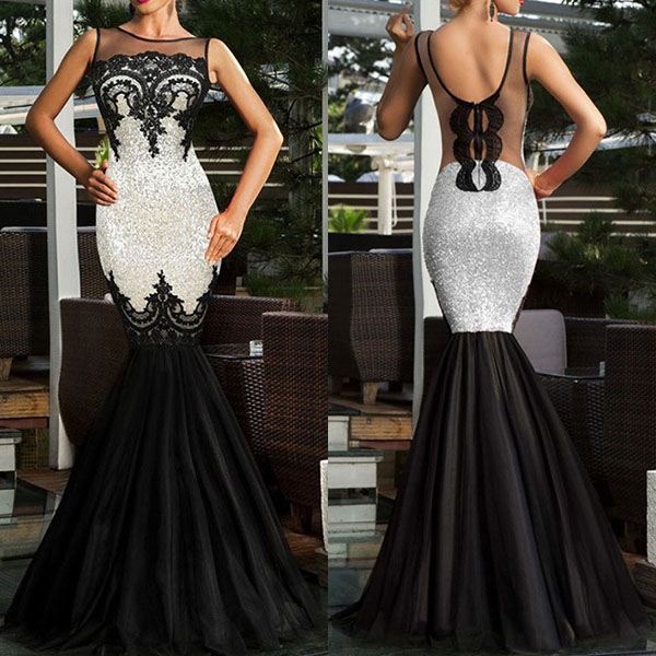 details like backless,see-through gauze spliced and sequin design make this piece look so alluring and gorgeous.