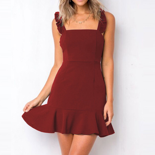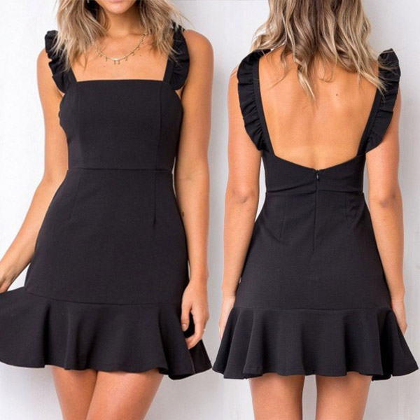 design aims to give you an elegant vibe,while the backless and ruffle hem design will give you a more