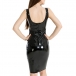 It boasts an elegant,classic yet mysterious black tone,accompanied with backless,square collar a tight