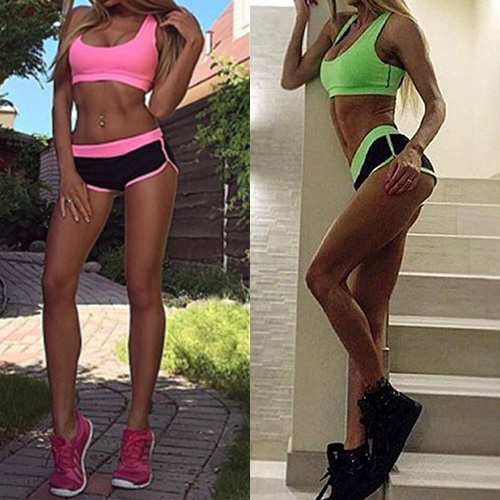 Contrast color style,including a sleeveless backless crop tops and an elastic waist shorts,