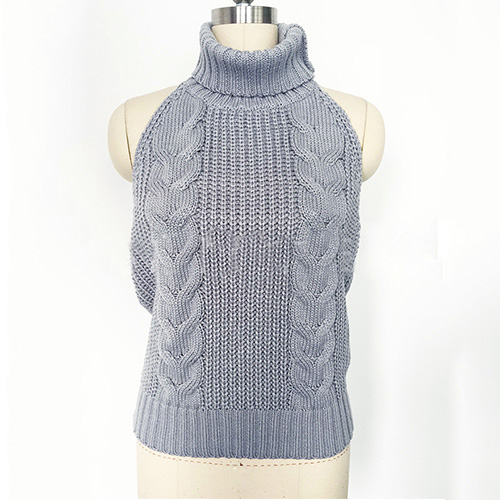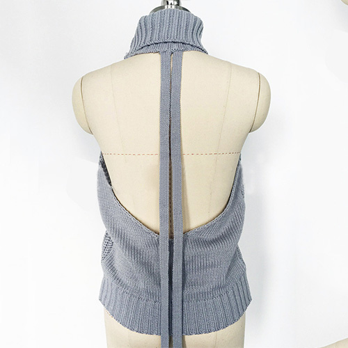 Sexy Backless Sleeveless Turtleneck Knit Sweater