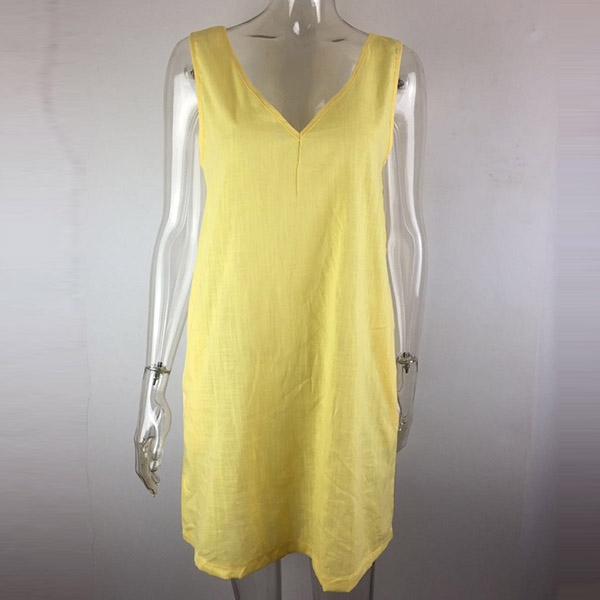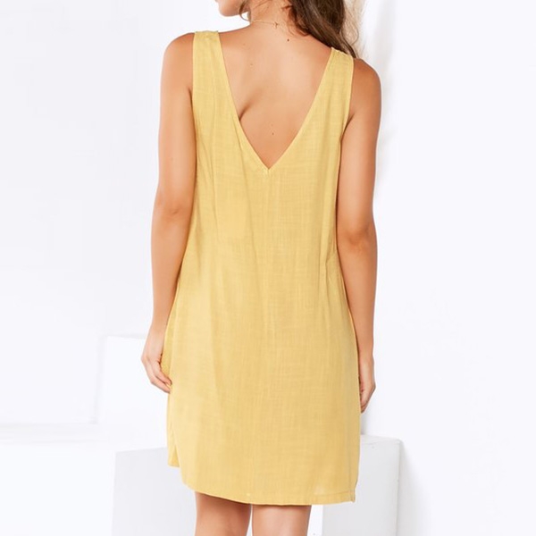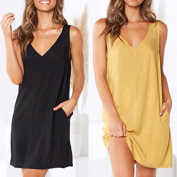sleeveless dress. Solid style,the backless and v-neck design can offer you a sexier look. If you wanna