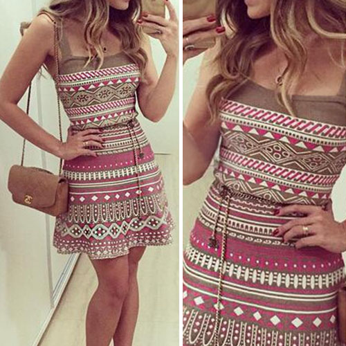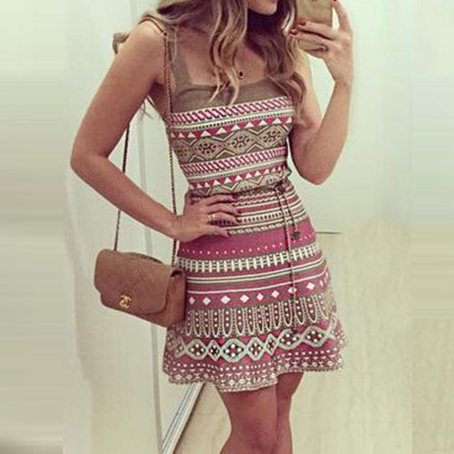 Dreamy and sweet, this dress features sling style,its chic printed pattern makes it look more eye-catching.