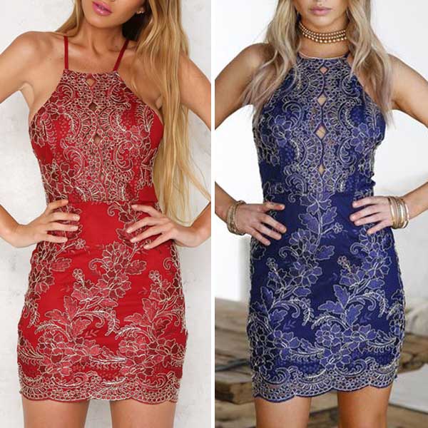 window with this lace dress. Sling style,with backless and a fit silhouette,this dress can exude