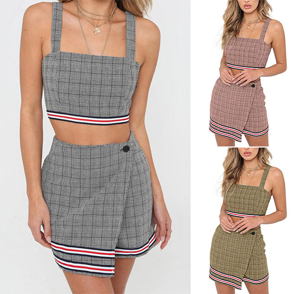 Inject a dash of sexy and feminine flavor to your weekend look with this two-piece set. Plaid element design