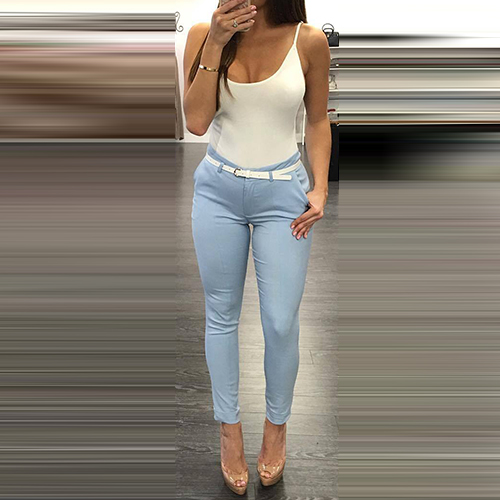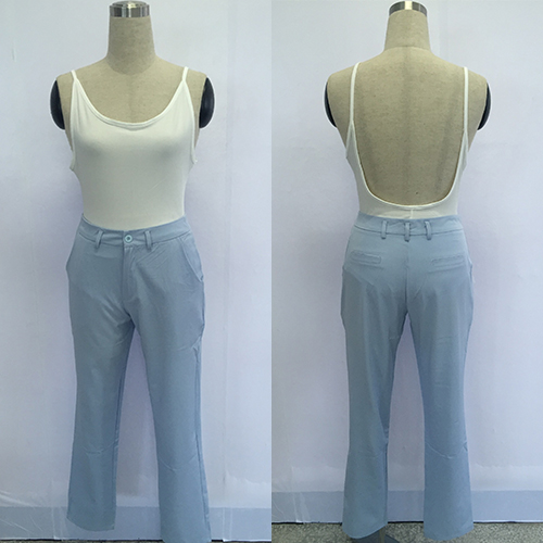 on this two-piece set! Including a backless sling romper and a high waist pants,this two-piece