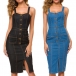 Seductive appeal can come easily once you slip into this denim dress. Sling style,with backless,