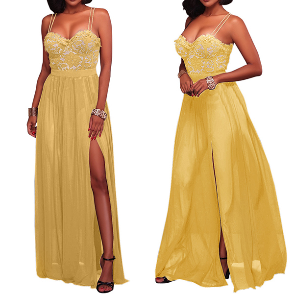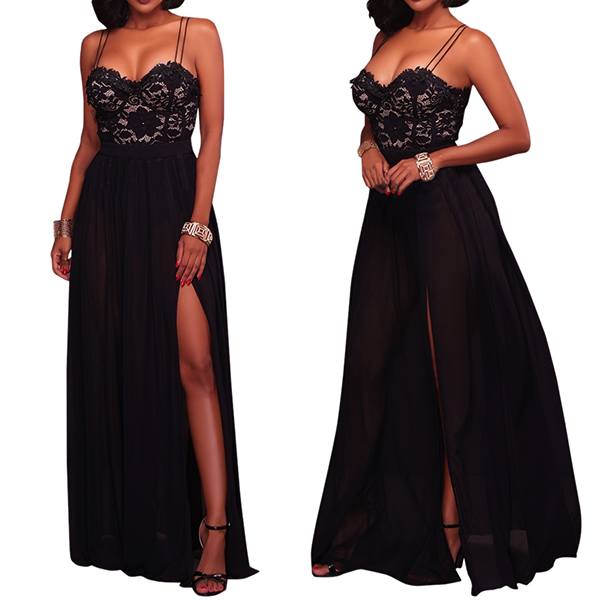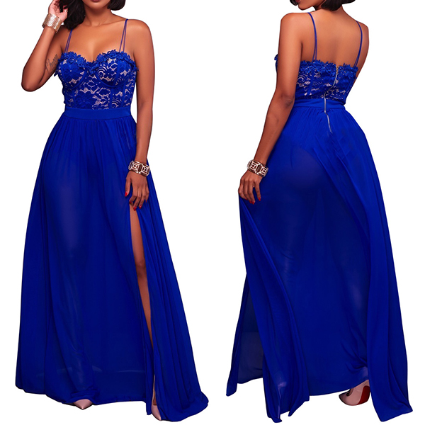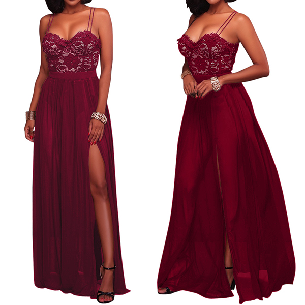 night with this dress. Sling style,its stunning details like backless,slit hem and lace spliced design