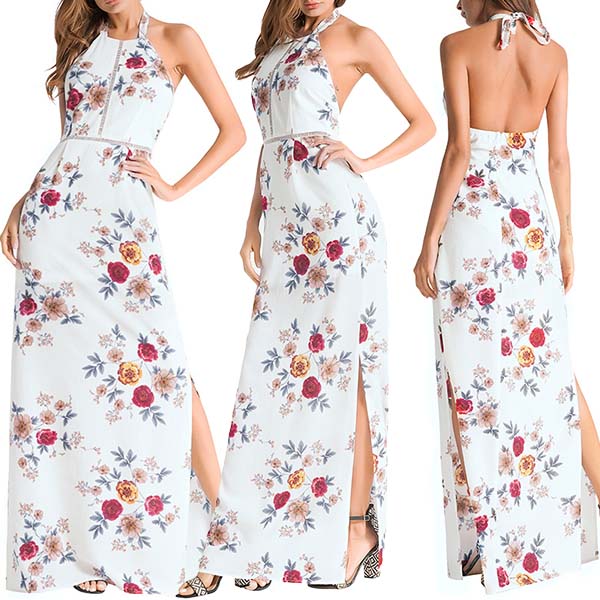 This sexy and alluring dress will help you gain more compliments. Halter style,boasts vibrant floral print,