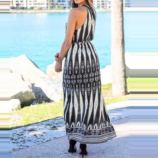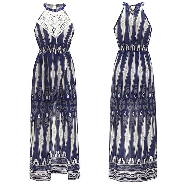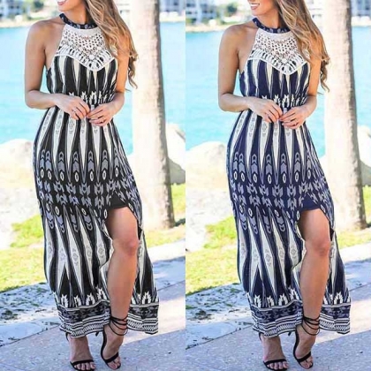 Halter style,the off-shoulder and slit hem design makes it look sexier,and the high waist and maxi length design