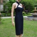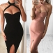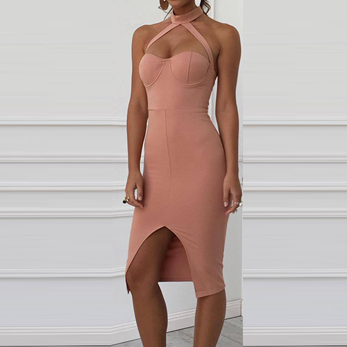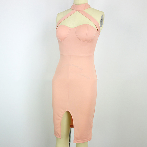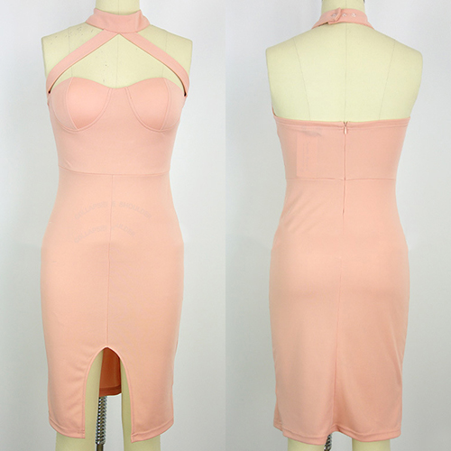 A perfect epitome of sexy and sultry,this halter dress is designed with backless,hollow out,slit hem and a super fit silhouette.