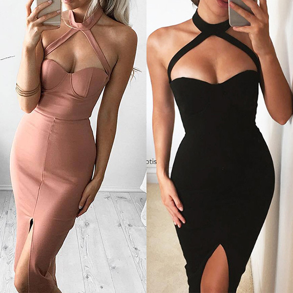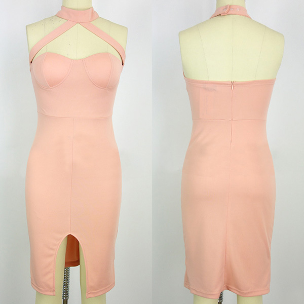 When stepping into the party with this dress,you wold be the focus. This halter dress is finished with backless,hollow out