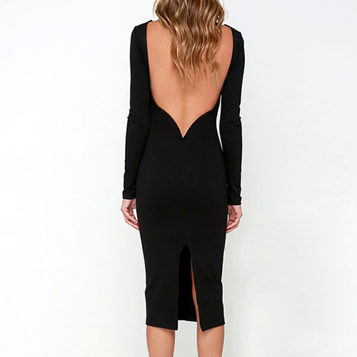 With a body-flattering fit,backless and slit hem design, this piece was clearly designed with the sultry