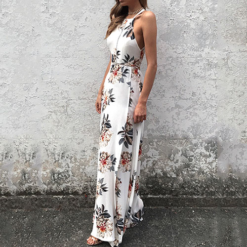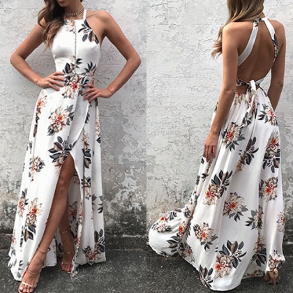 charming. Features sweet and vibrant floral print,with backless and slit hem design makes it look more alluring.