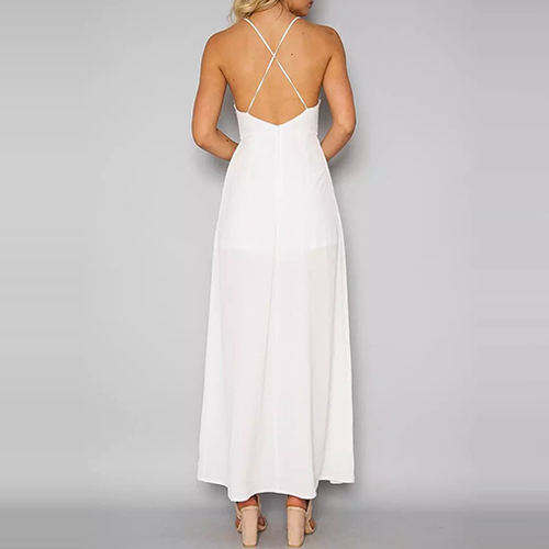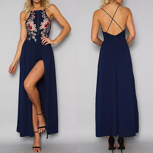 Its alluring details such as backless,slit hem and embroidery design make this dress look appealing. An ideal choice for parties and gatherings.