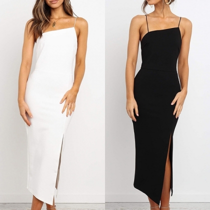 color and sling style,finished with slit hem and backless design,this piece can exude your charming
