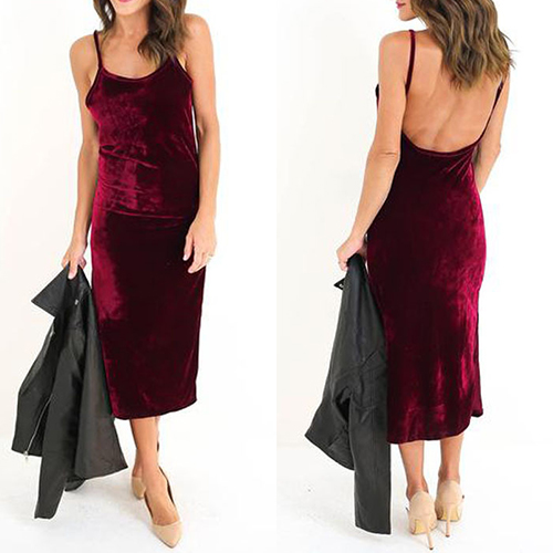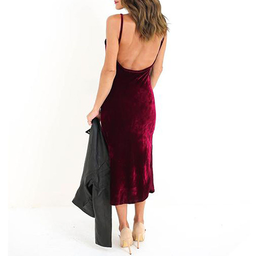 just rely on this sling dress for a sexy and charming look. Solid color style,its backless and slit