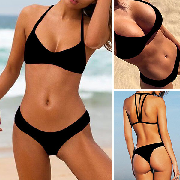 Solid color style,consists of a backless bikini top and a low-waist bikini bottom,this bikini set is the one what you are looking for!