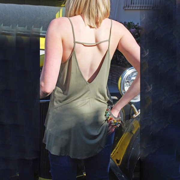 Hey,girls,you can expose your charming skin with this cami top. It is crafted in a solid color,the