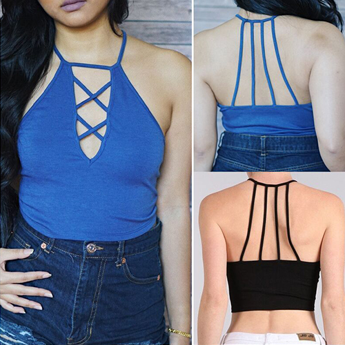 Go for a sultry and girly look with this cami top. Solid color style,with backless and hollow out design makes