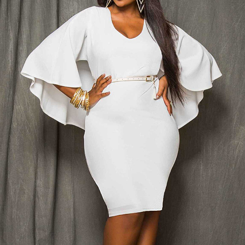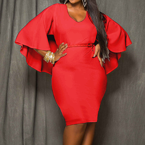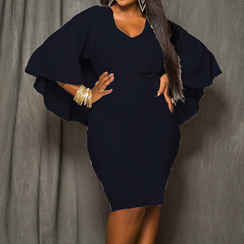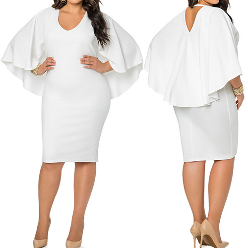 Wow,such a chic and stylish dress! Cape-style design,with a solid color,