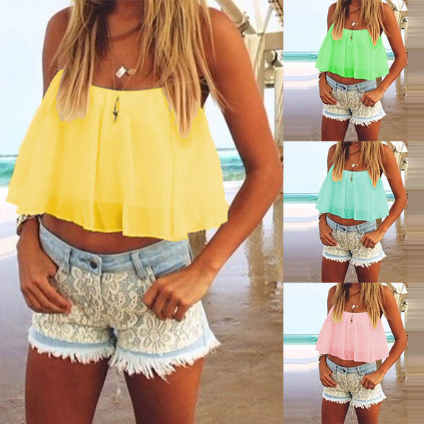 On these sun-soaked summer days,you can slip into this chiffon cami top to showcase your charming