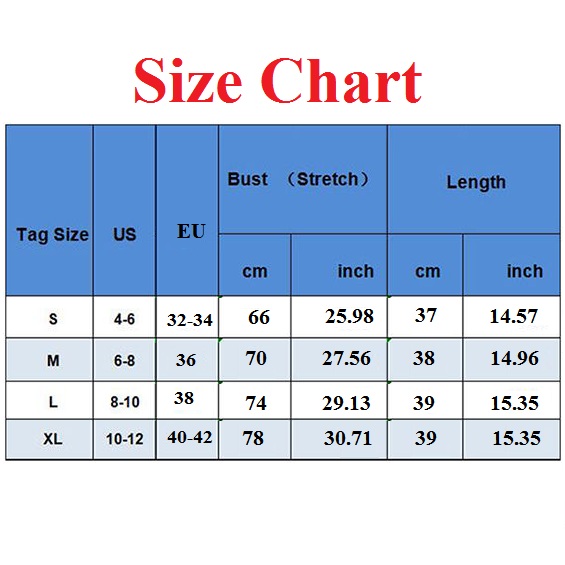 XL : Bust : 78cm(30.71"); Length : 39cm(15.35");