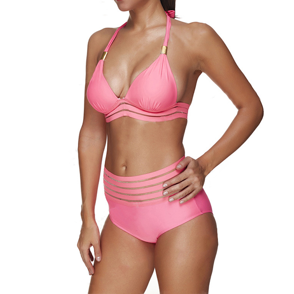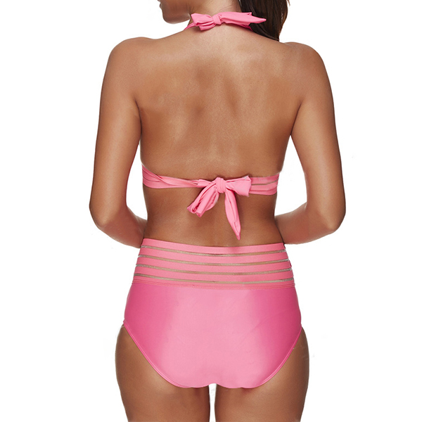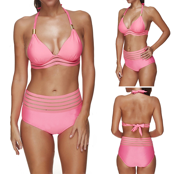 consists of a halter bikini top and a high waist bikini bottom,this bikini set can showcase your seductive curve.