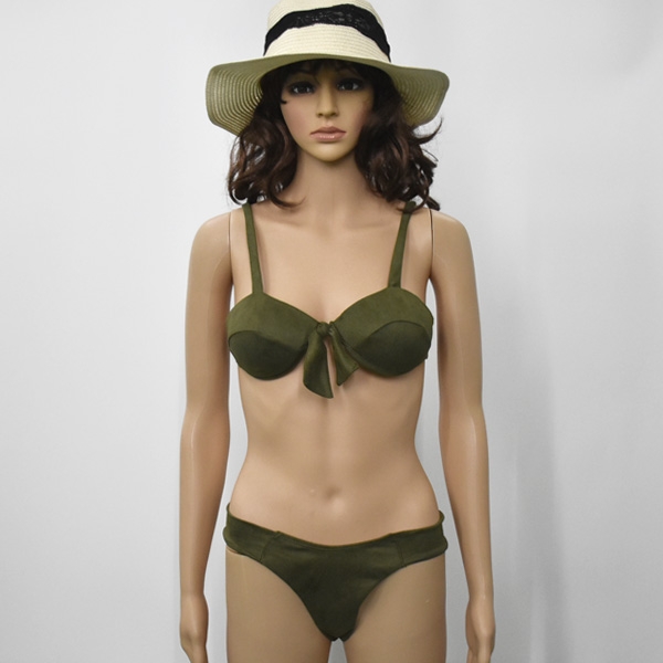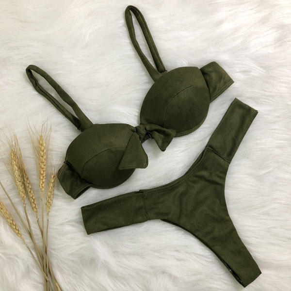 with a solid color,the padded and underwire design can better shape your curve. And the knotted design at front