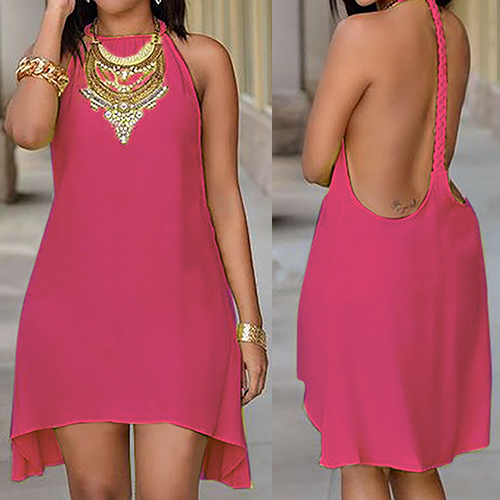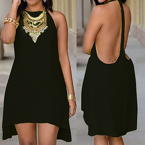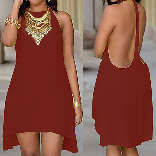 Redefine your look with this dress. Solid color style,its backless design adds some sexy flavor,