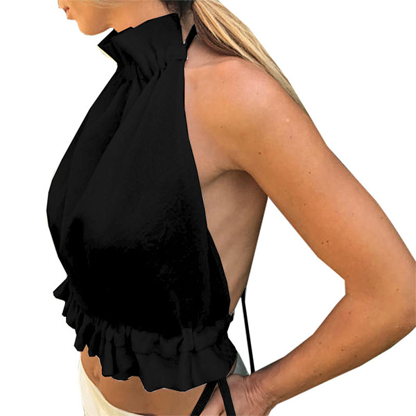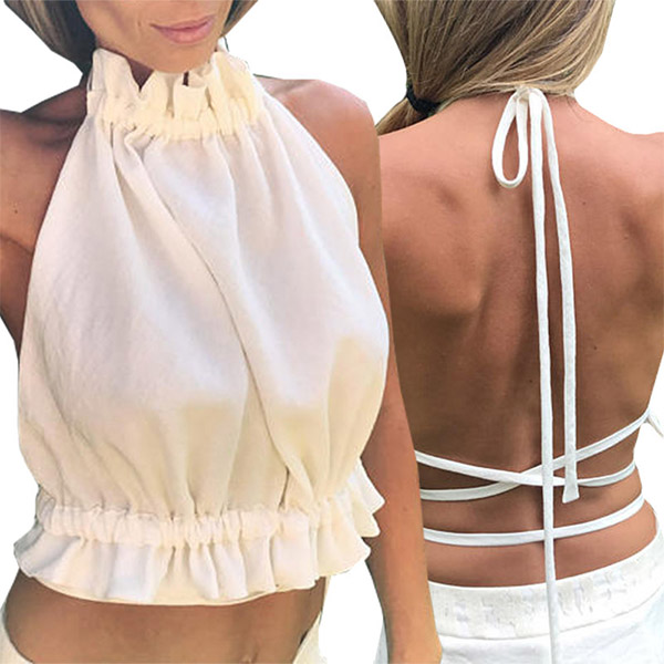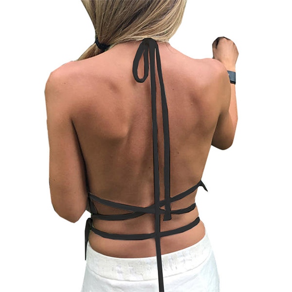 When you slip into this crop top,you can easily arouse a splash. Solid color style,the backless and lace-up