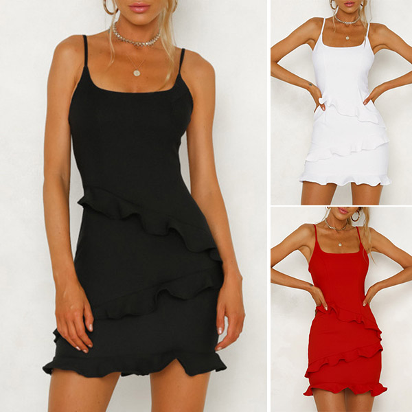 Sling style,with backless,solid color and ruffle design,sexy and charming. Dress it up with your sexy heels,