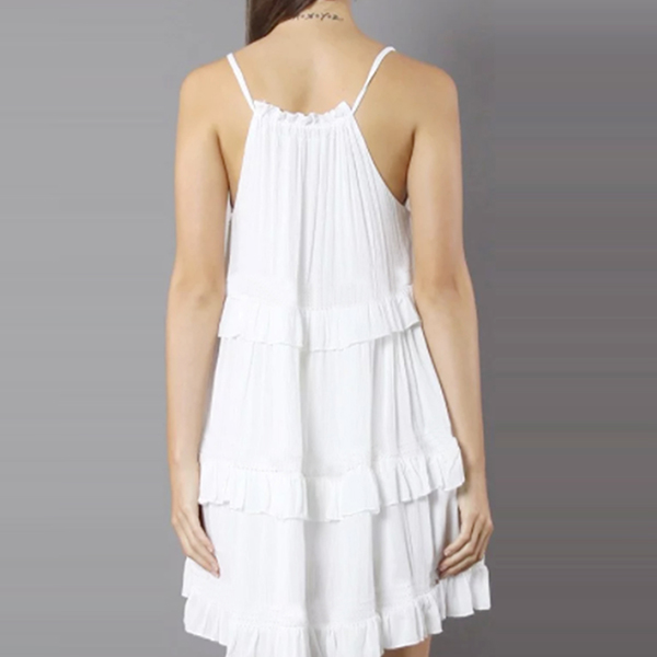 Sling style,its backless and ruffle details make this piece look appealing,while its soft fabric and loose silhouette design