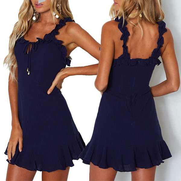 Comes with a solid color,simple yet elegant. The backless and ruffle hem design will further enhance