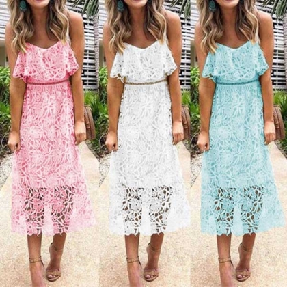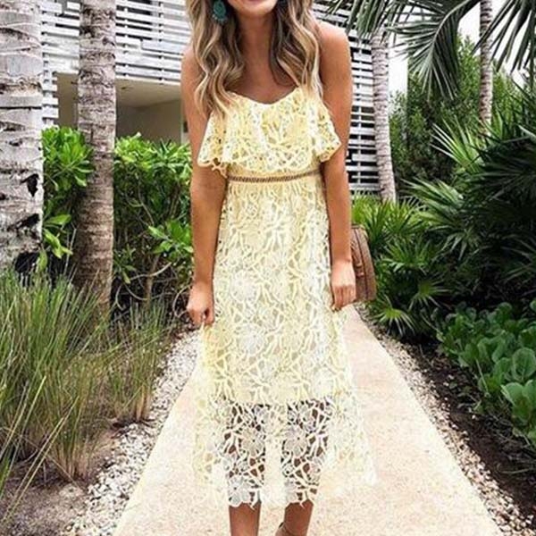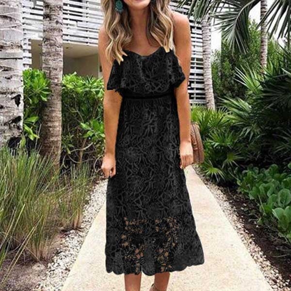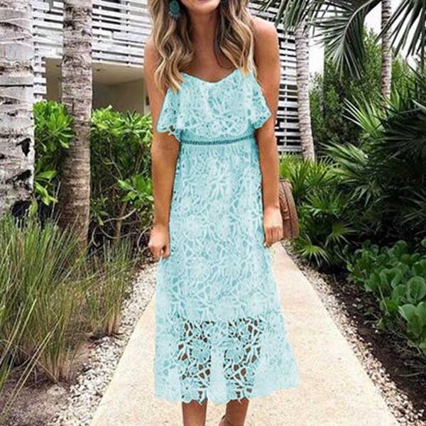 That's why we love this lace dress. Sling style,with backless,ruffle and solid color design,