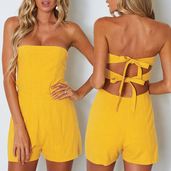 For a sexy and alluring party look,you can count on this romper! Solid color style,the backless and strapless