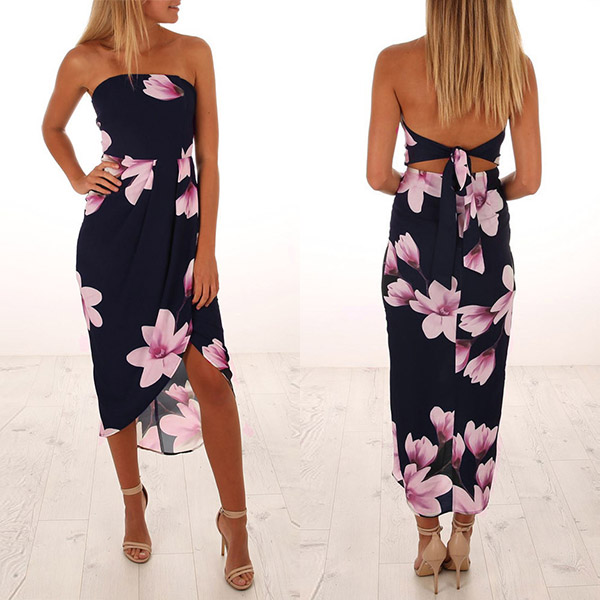 From backyard barbecues to garden parties to evening events,this printed strapless dress can give you
