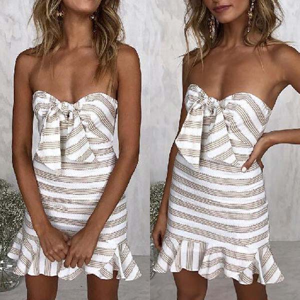 When you wanna exude your feminine appeal,you can count on this dress. Strapless style,with backless