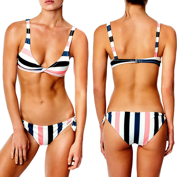 When invited to a bikini party,this bikini set can be your good choice. Striped style,including a backless bikini top