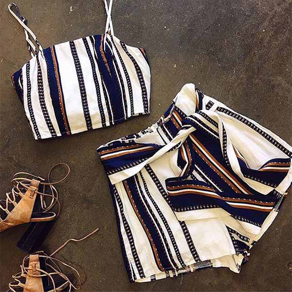 On your lazy days,you can count on this two-piece set to achieve for a sexy and beautiful look. Striped style,