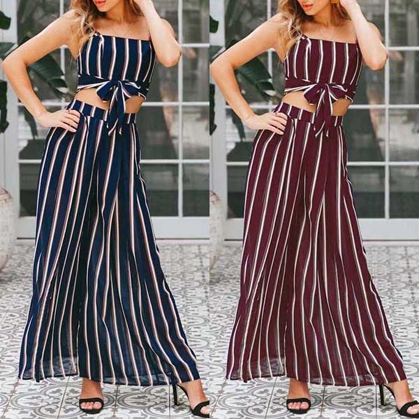 wide-leg pants,this two-piece set can exude your charming feminine appeal as