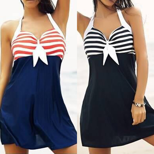 with backless and striped spliced design,sexy and charming. Obviously,it will give