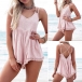 This cami romper features a sweet pink color,with backless and tassel hem design makes it