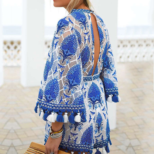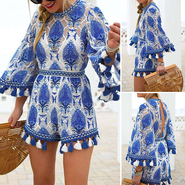 trumpet sleeve and tassel spliced design make this piece look so sexy and alluring. When strolling on the street with this romper,