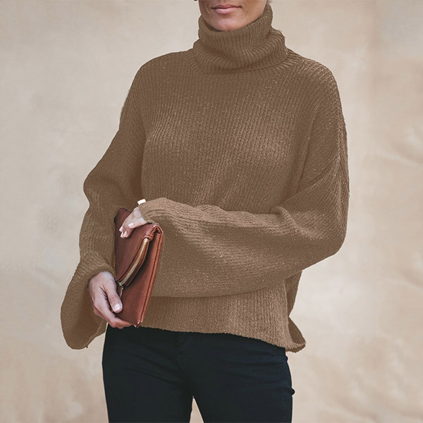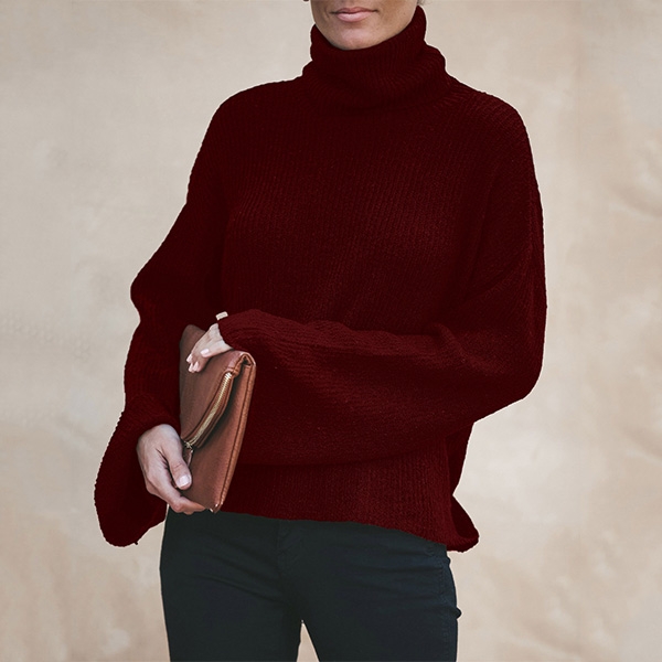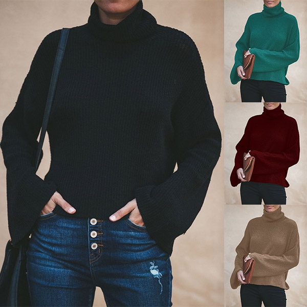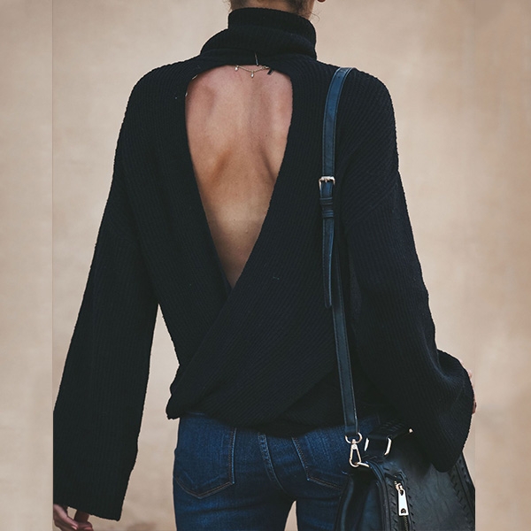finished with trumpet sleeve,backless,turtleneck and a loose silhouette,this sweater can keep you warm while