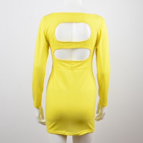 This dress features bright yellow color,can perfect set off your fair skin. And its backless and u-neck